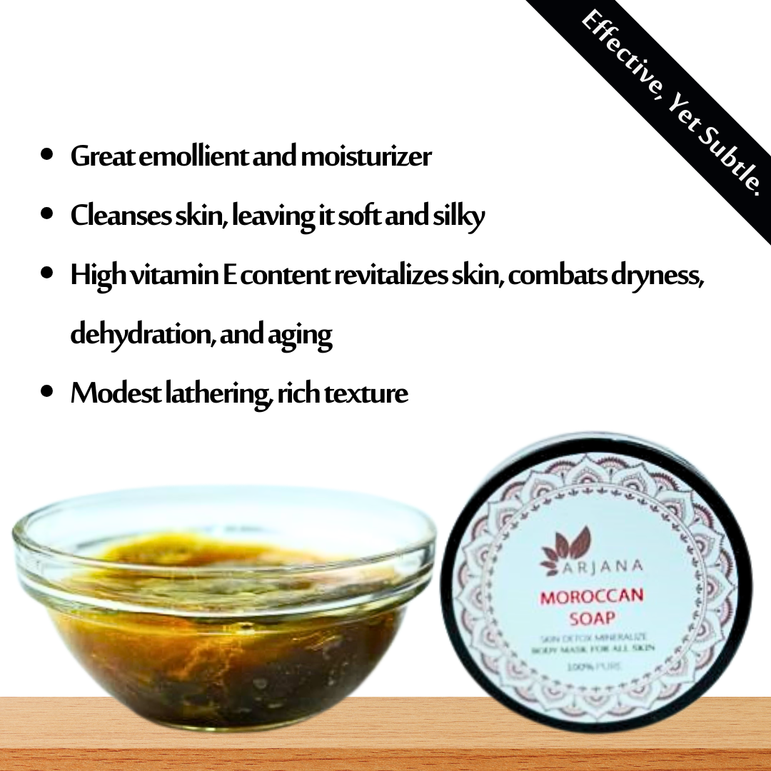 يتميز صابوننا المغربي بنقائه وأصالته. على عكس الصابون التجاري، فهو خالٍ من المواد الكيميائية الاصطناعية والعطور الصناعية. مستخلص زيت الزيتون الطبيعي 100% المستخدم في صابوننا معصور على البارد، مما يحافظ على جميع مضادات الأكسدة المفيدة والفيتامينات الأساسية لصحة الجلد. بالإضافة إلى ذلك، يتم تصنيع صابوننا يدويًا باستخدام التقنيات التقليدية، مما يضمن تصنيع كل قطعة بعناية واهتمام بالتفاصيل.