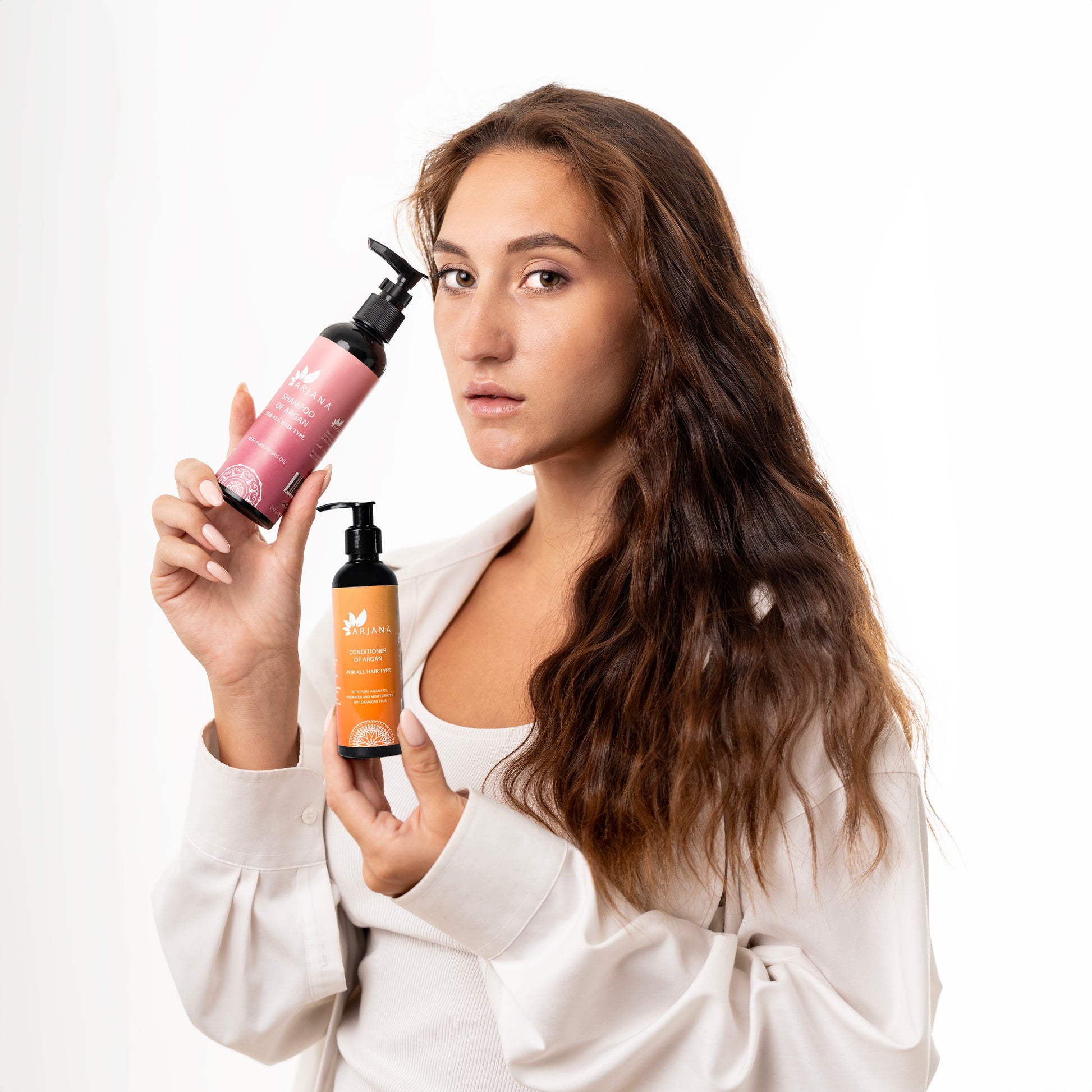 Elevate your haircare routine with our Argan Shampoo and Argan Conditioner Value Pack, designed to deliver the ultimate nourishment and shine. Infused with the richness of 100% natural Moroccan argan oil, this duo works harmoniously to cleanse, hydrate, and protect your hair from root to tip.